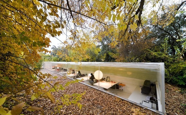 有這種完全把辦公室安置在樹林中的辦公室,保持里面保持里面辦公環(huán)境和干凈整潔的同時(shí),真真正正與大自然零距離接觸。值得一提的是,這座大樓幾乎全部都使用可再生資源。